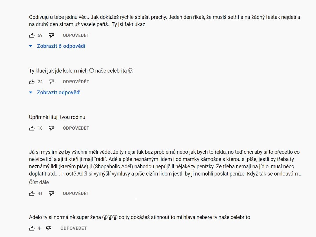 Mnoho dalších obdobných negativních komentářů, si můžete sami přečíst pod jejími videi.